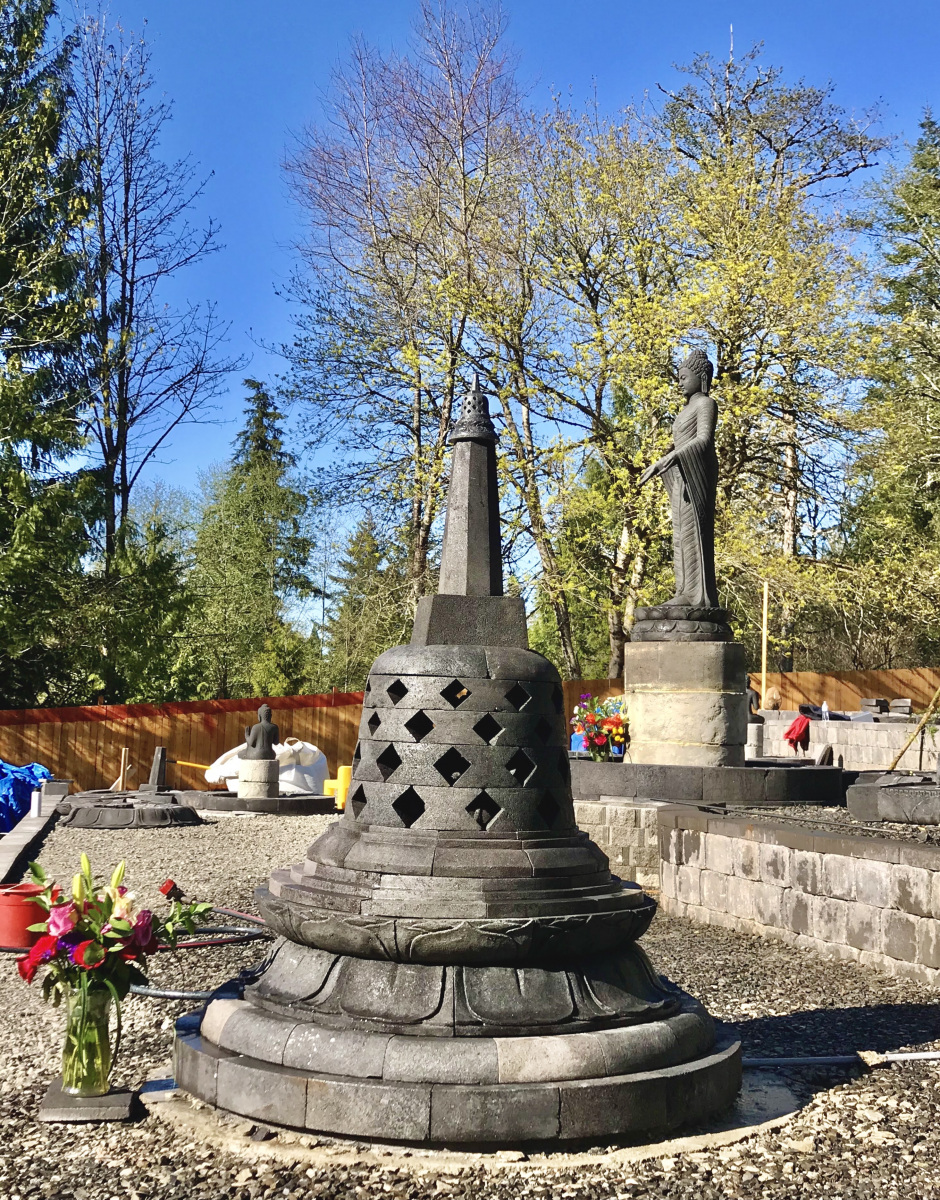It is with extreme gratitude that Oregon Ariyamagga Okasati Refuge (OAOR) has opened the Ariyamagga Pagoda, a unique homage to the Borobudur Temple in Indonesia. Ariyamagga means the eightfold path. How wonderful and fortunate OAOR is to host such a beautiful representation of the Buddhist path.