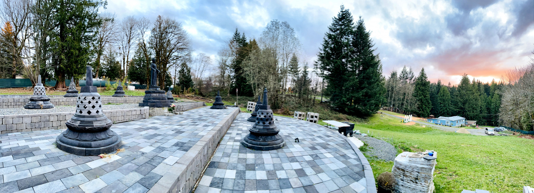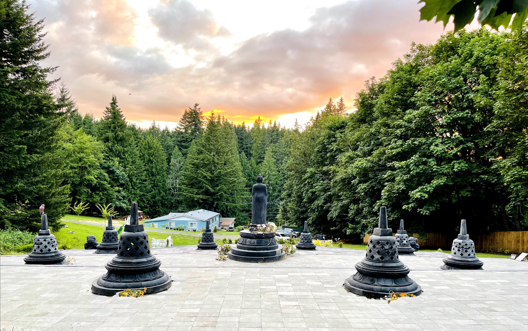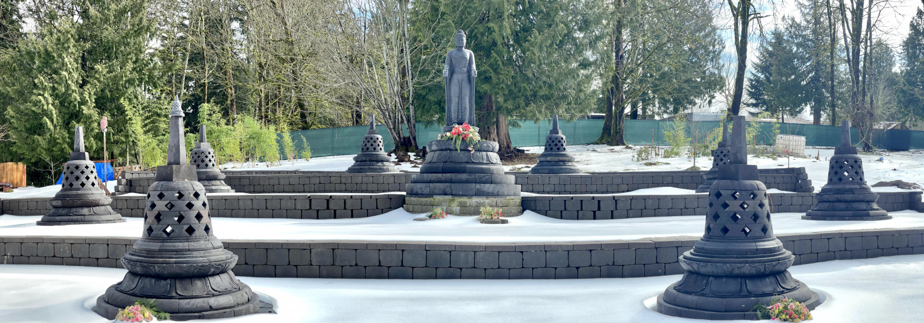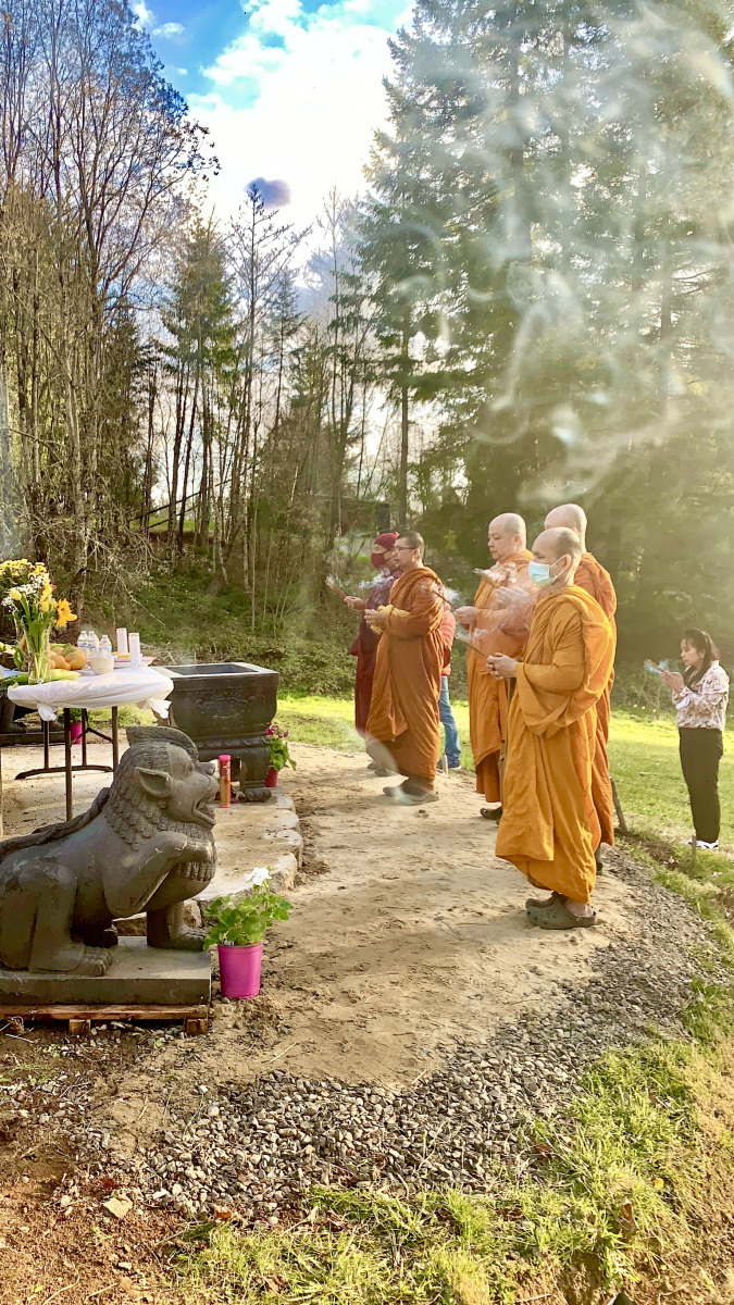 All of this was made possible by OAOR’s purchase of just under five acres of property in Sandy, Oregon in 2017. The site includes an extremely modest residence for monastics at the lower end of the property, and the pagodas are on the hillside behind the residence.